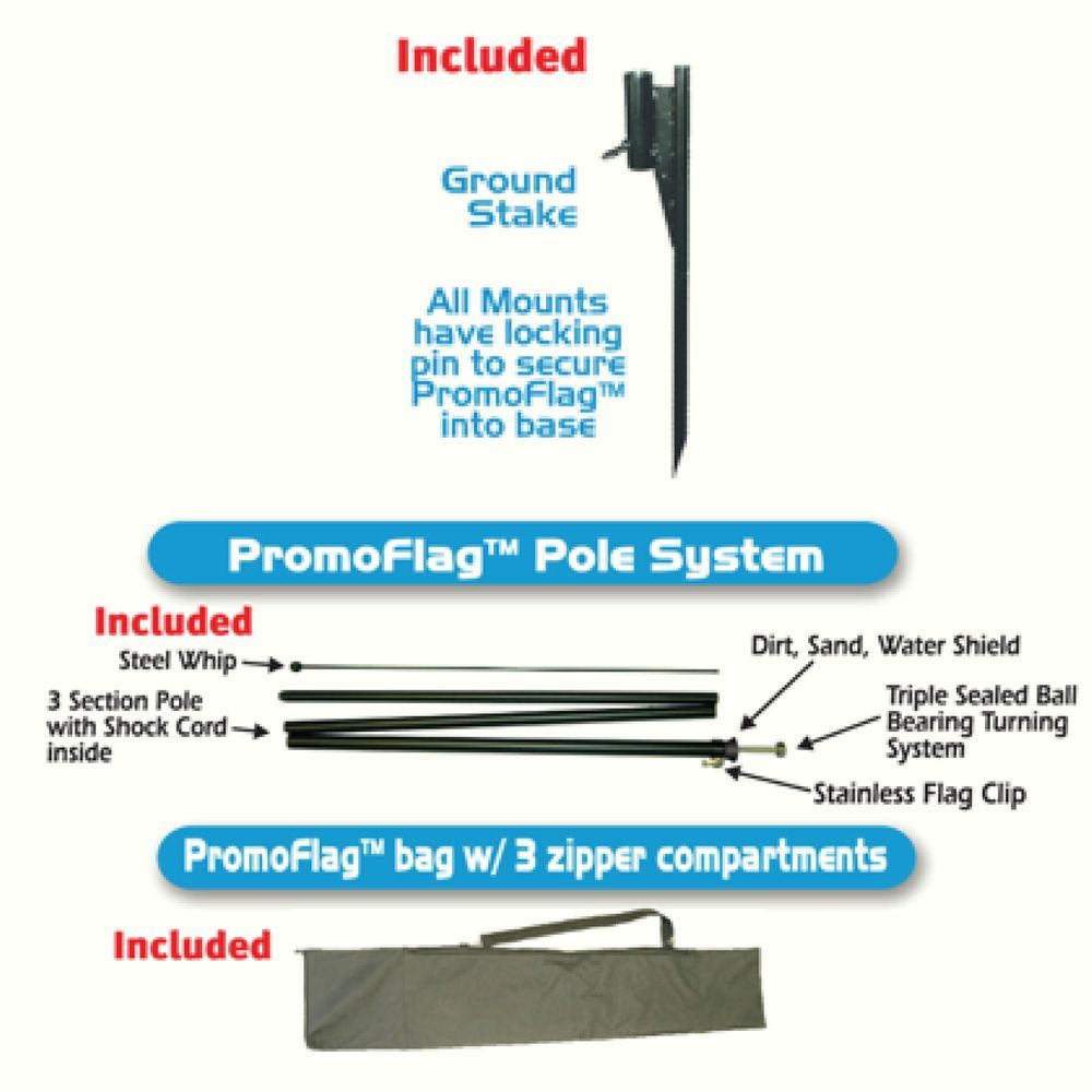 Bag with carry strap and 3 compartments to keep your flag, stake and poles separated